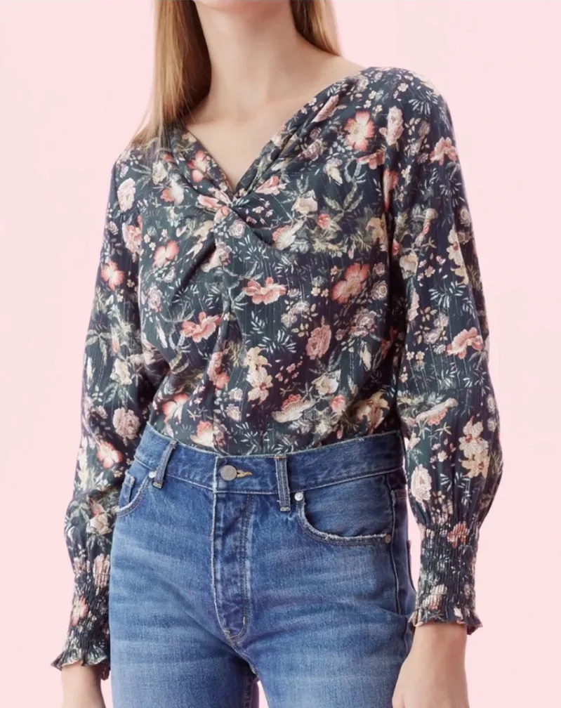 Rebecca Taylor La Vie Secret Garden Green Glass Floral Twist front Blouse XS Blue - $40 - From Samantha