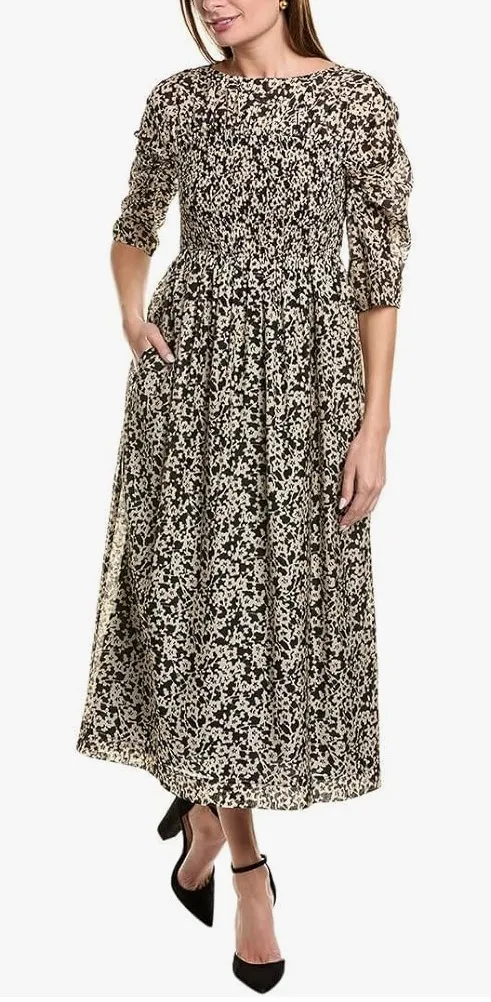Rebecca Taylor Osaka Silk Blend Cream Floral Ruched Puff Sleeve Midi Dress New Without Tag Osaka is... Show more