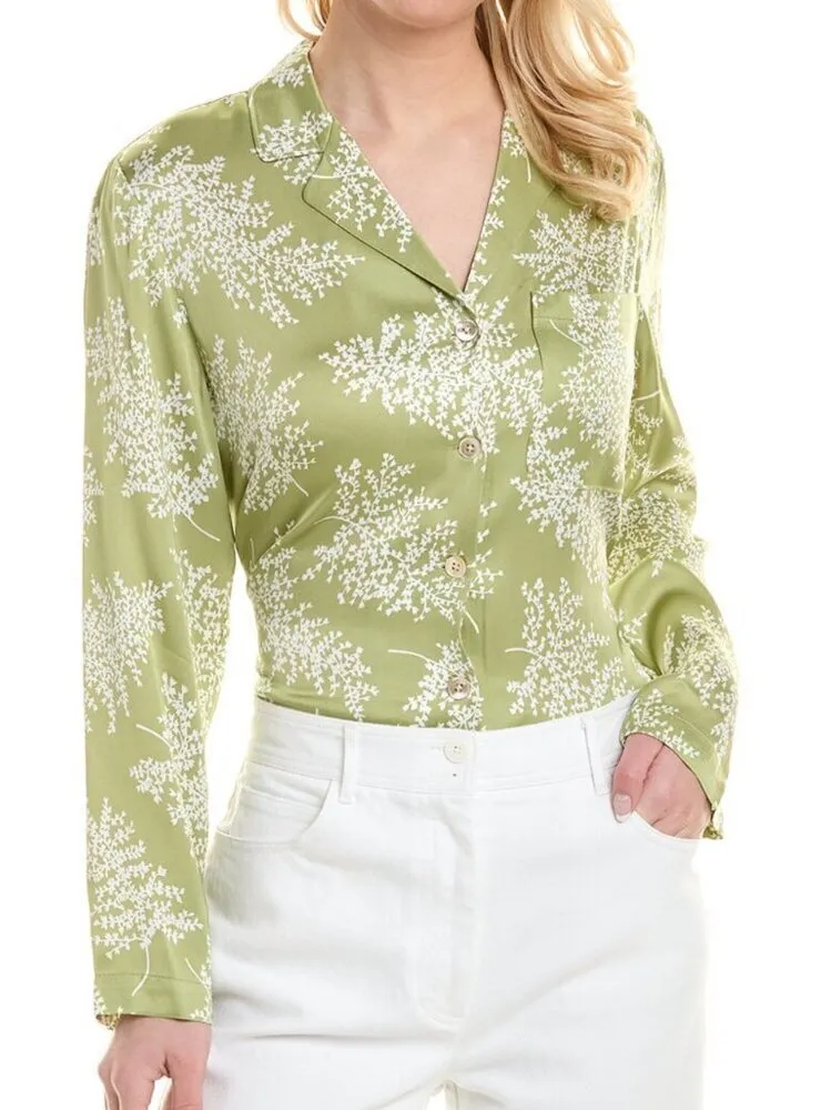 Rebecca Taylor Size Medium Green Satin Fleur Fern Floral Blouse Casual Career Brand New with Tags i... Show more