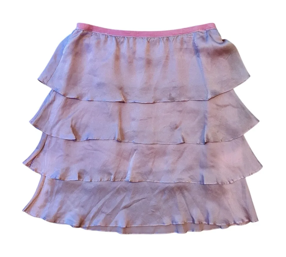 Rebecca Taylor Pink ruffle skirt 100% Silk Velvet waistband A few tiny pulls and snags, not super no... Show more