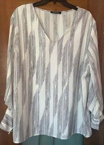 Rebel Wilson x Angels Women Plus White Black Striped LS Vneck Blouse-1X - $18 - From Kristine