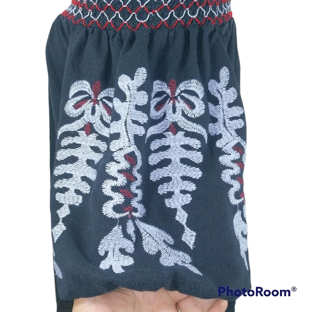 ize S cotton dress off shoulder heavy embroidery on balloon sleeves tunic style Gently worn please... Show more