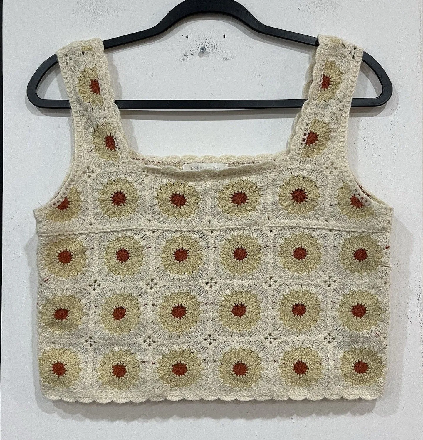 Rebellion Crochet Floral Granny Square Crop Tank Top - size small - cotton / acrylic blend - pit to... Show more