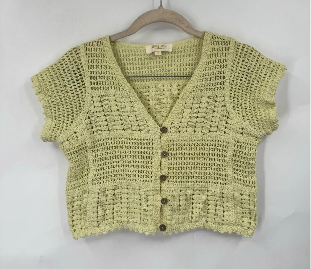 Rebellion Open Knit Button Crop Top Women S Yellow Y2K Retro Coquette Whimsical - $25 - From Ashley