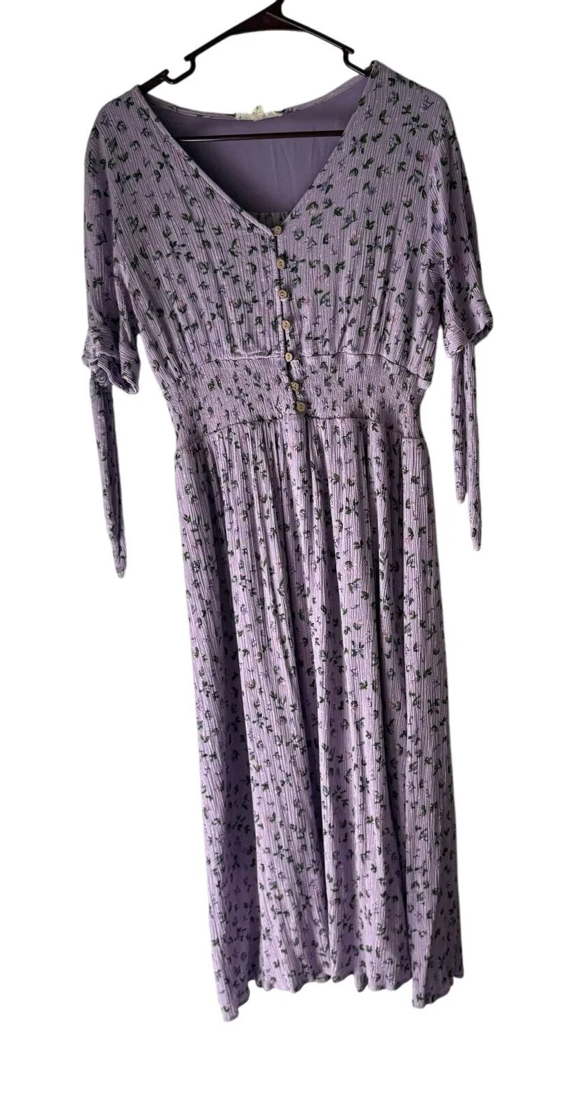 Reborn J Size Large Purple Floral Cottage Smocked Babydoll Milkmaid Midi Dress Item is in excellen... Show more
