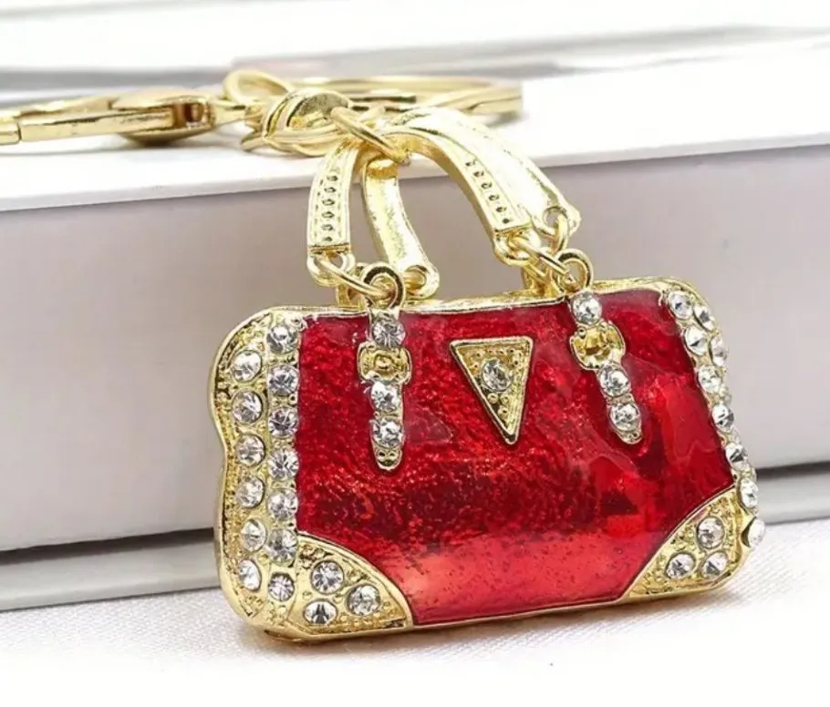 Red & Gold Rhinestone Purse Bag Charm Keychain – Luxury Bling Accessory – NWT - $19 New With Tags - From Beth