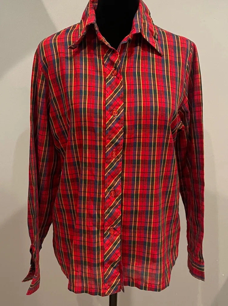 Red and Green Plaid Button-Up Shirt women’s vintage Sears brand - $23 - From Lisa