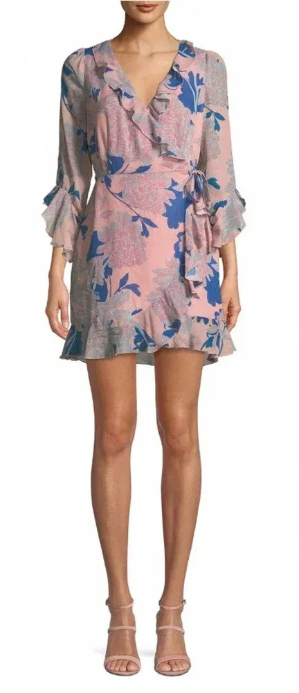 Red Carter "Tessa" Dress Floral-print dress with ruffled trim. V neckline; wrap front ties at side.... Show more