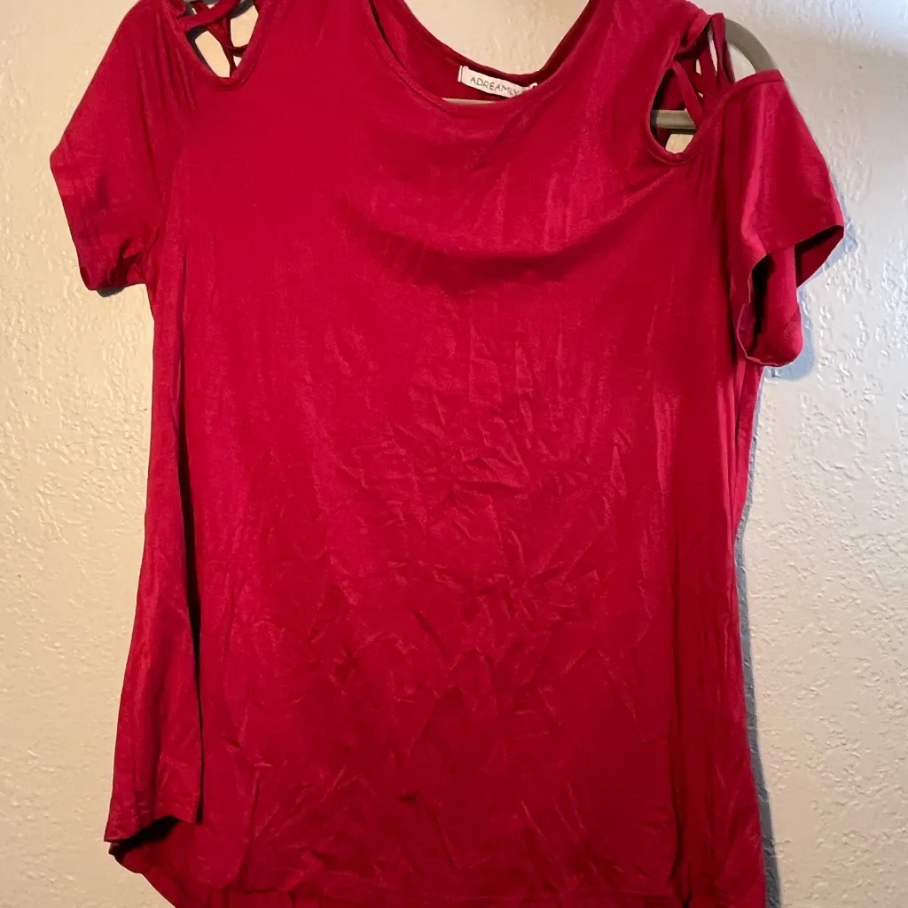 This vibrant red tee features stylish cut-out details on the shoulders, adding a unique touch to its classic short sleeve design. Made from a soft, lightweight fabric, it offers a relaxed fit perfect for casual wear. SZ 20/21 Brand new with tags Pre-Cleaned Per Standards. Stored in a Smoke-Free Environment. *** Same Day or Next Business Day Shipping *** We Sincerely Hope You Enjoy Your Purchase. If You Have Any Questions or Concerns, Please Feel Free To Contact Us. A2
