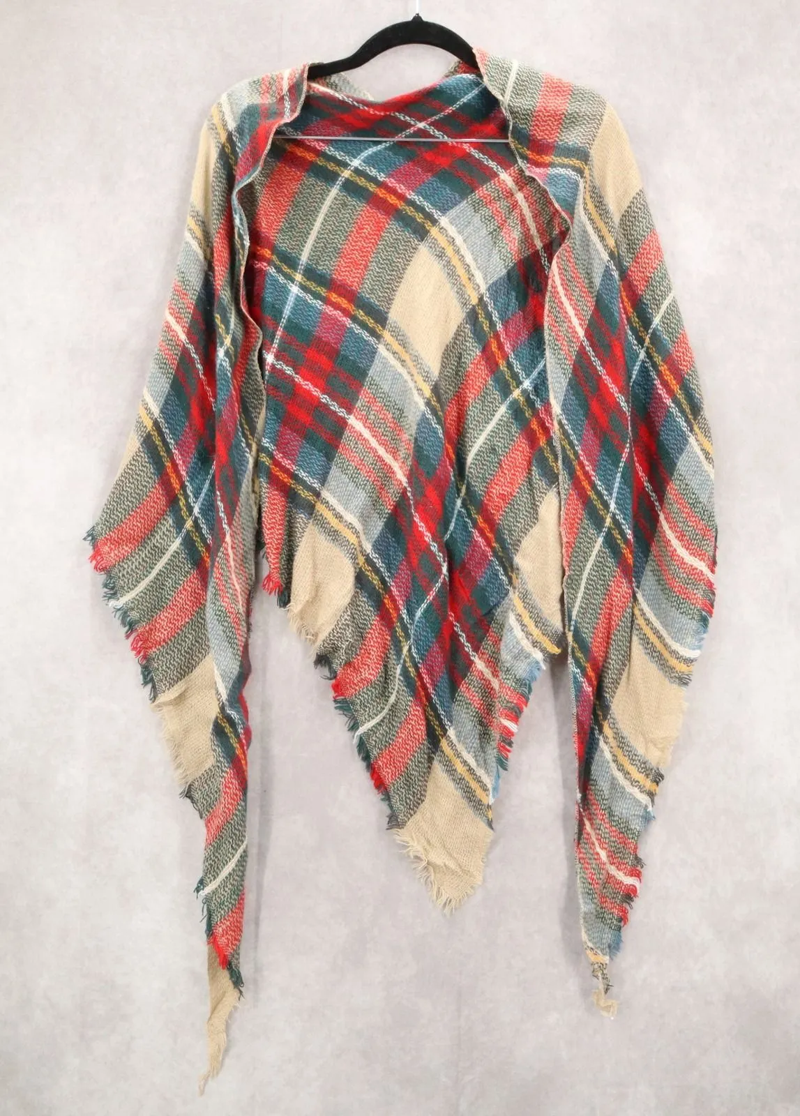 Red Plaid Green Cream Boho Holiday Triangle Shawl Fringe Tartan Wrap Scarf‎ OS - $29 - From LimenDime