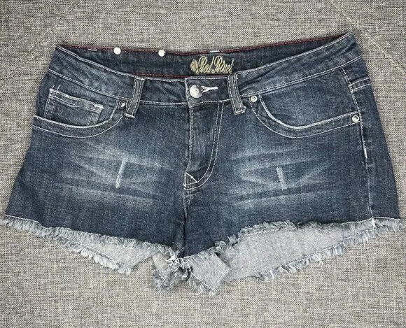 Red Rivet Jean Shorts Size‎ 7 Denim Cut Off Frayed Raw Hem Thick Stitch Pockets Blue Size undefined - $17 - From Christina
