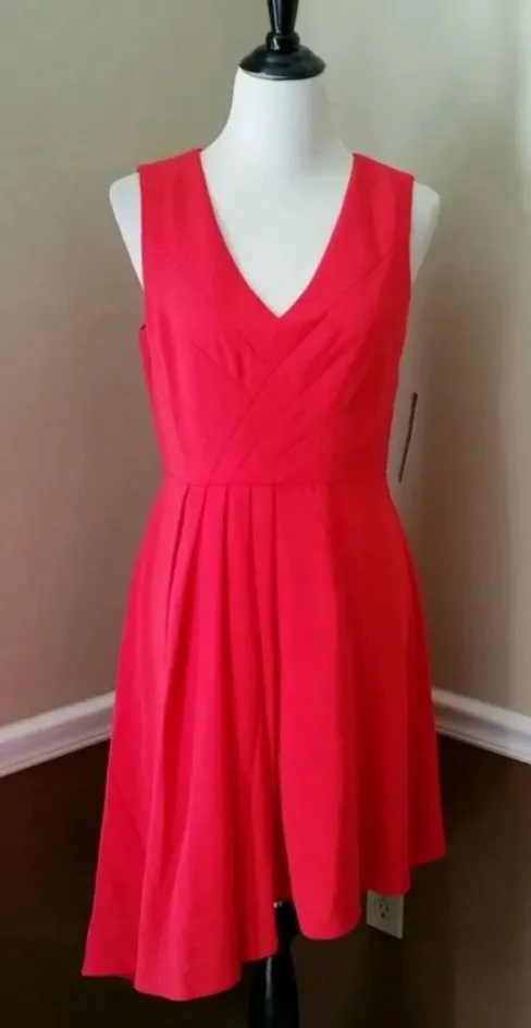 Ivy & Blu Beautifully constructed red sleeveless party dress with V neckline, stitched bodice, pleated skirt has asymmetric hemline that flows diagonally to the side. Back zipper with hook and eye closure. New With Tags Retail $154.99 Sold Out on Modcloth Size 8 100% Polyester. Fabric does not provide stretch. Approximate Measurements: Taken across the garment laid flat Bust: 17 inches Waist: 14.5 inches Length: 39.5 inches Clean, smoke-free home and studio. 5 star seller. Super fast shipping! Date night, girls night, party, wedding, special occasion, awards ceremony SKU#B1513 HNG
