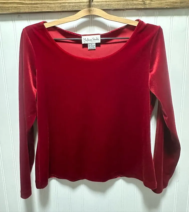 Red Velvet Velour Ballet Neck Long Sleeve Top Sz M WhimsygothValentines Day Love Size M - $18 - From Janna