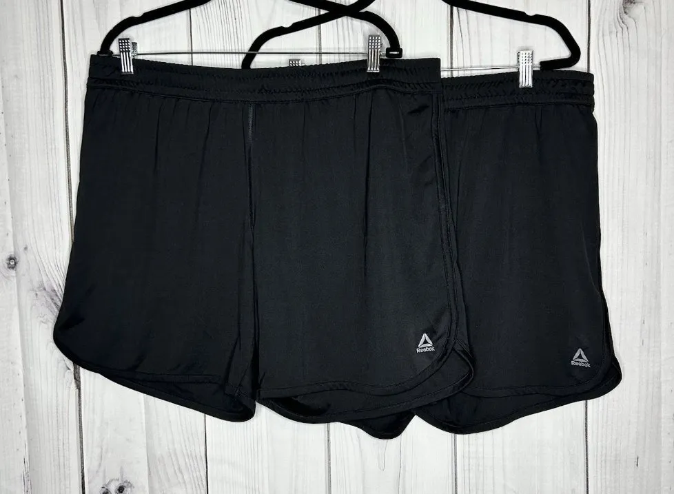 Reebok Athletic 7" Shorts Women's Sz XL Pull-on Drawstring Black Lot of 2, 100% polyester. These sh... Show more