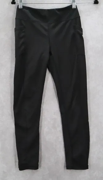 Reebok Black Leggings Sports Crop Ankle Athletic Sports Active Pants L Large Waist: 12" Length: 32"... Show more