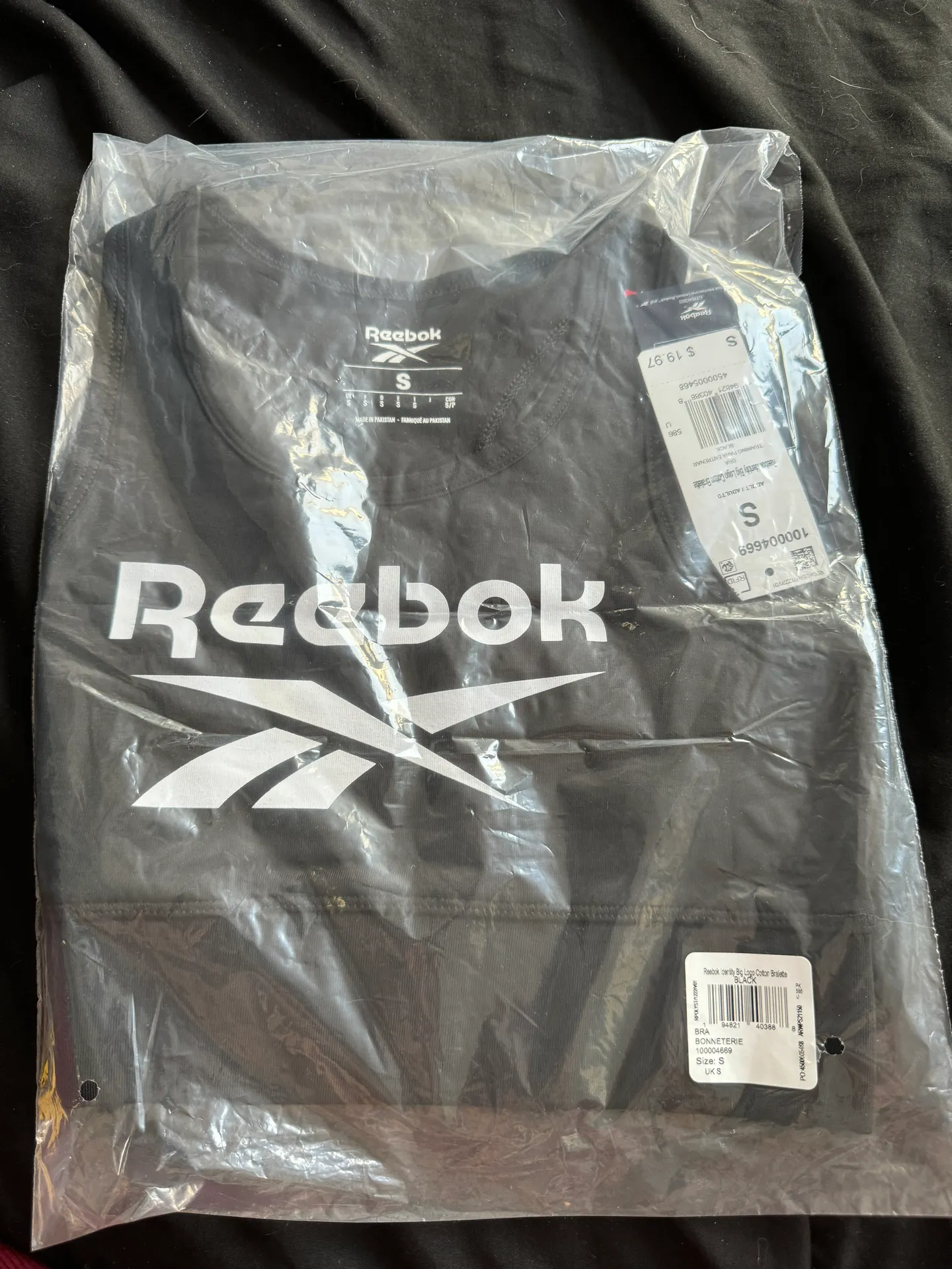 Black Reebok bralette size small. Brand new in unopened package.