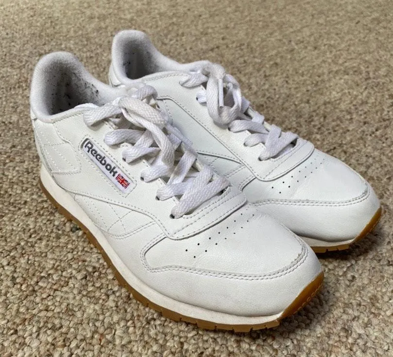 White Leather Reebok Classics Good Condition worn a few times Kids 5 is a women’s 6.5-7