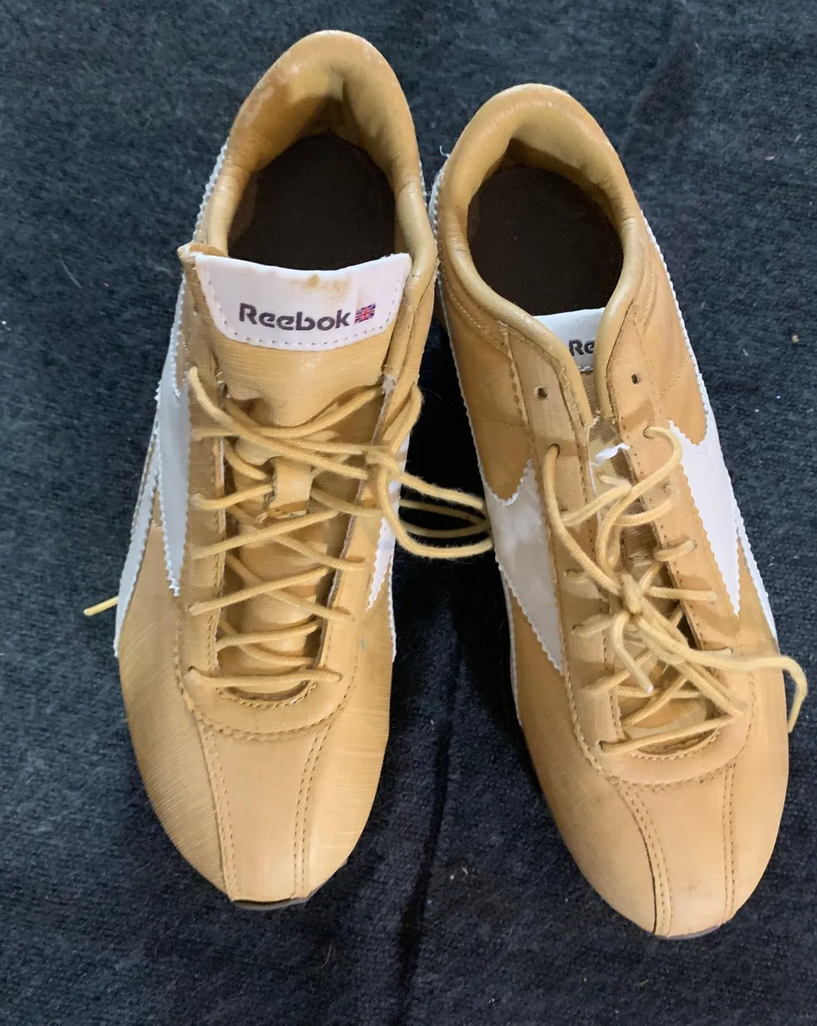 Hit the ground running in these vintage Reebok Gold Medalist sneakers. The warm tan hue offers a so... Show more