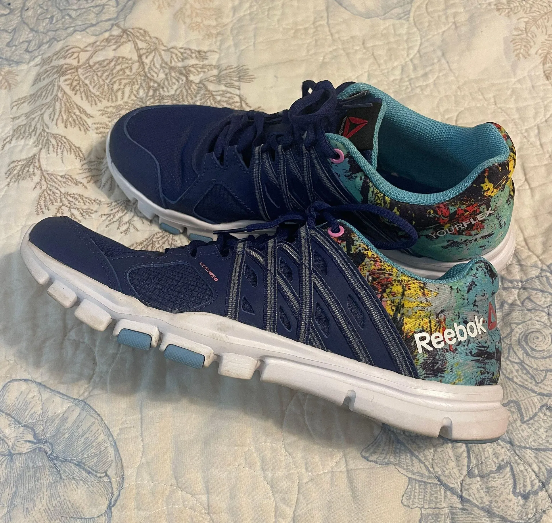 Cute Reebok training sneakers, women’s size 9. Only worn a few times to the gym for indoor workouts.... Show more
