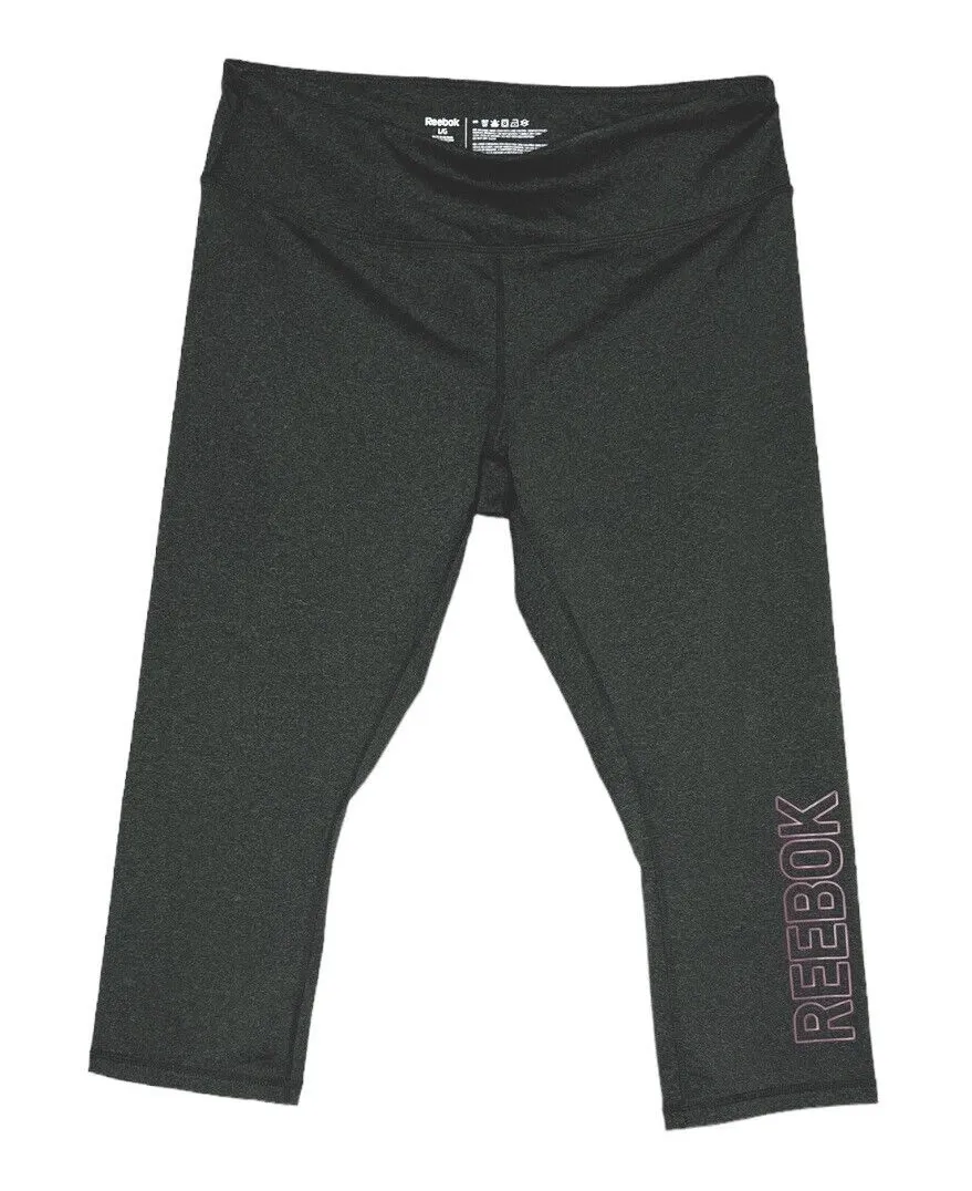 Reebok Women's Cropped Leggings Gray Pink Yoga Capri Pant Logo Women's Size Large Mid Rise Pull O... Show more