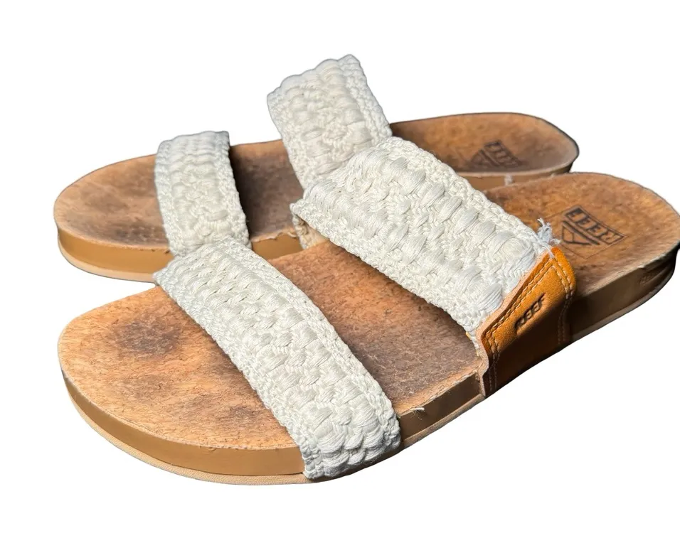 Reef Womens Cushion Bounce Vista Summer Holiday Beach Slide Slider Sandal Reef's supersoft, lightweight Cushion Bounce foam is used to create an easy slide sandal with a cupped heel and arch support for all-day comfort. cushioned arch support in the footbed Synthetic lining, sole, and upper