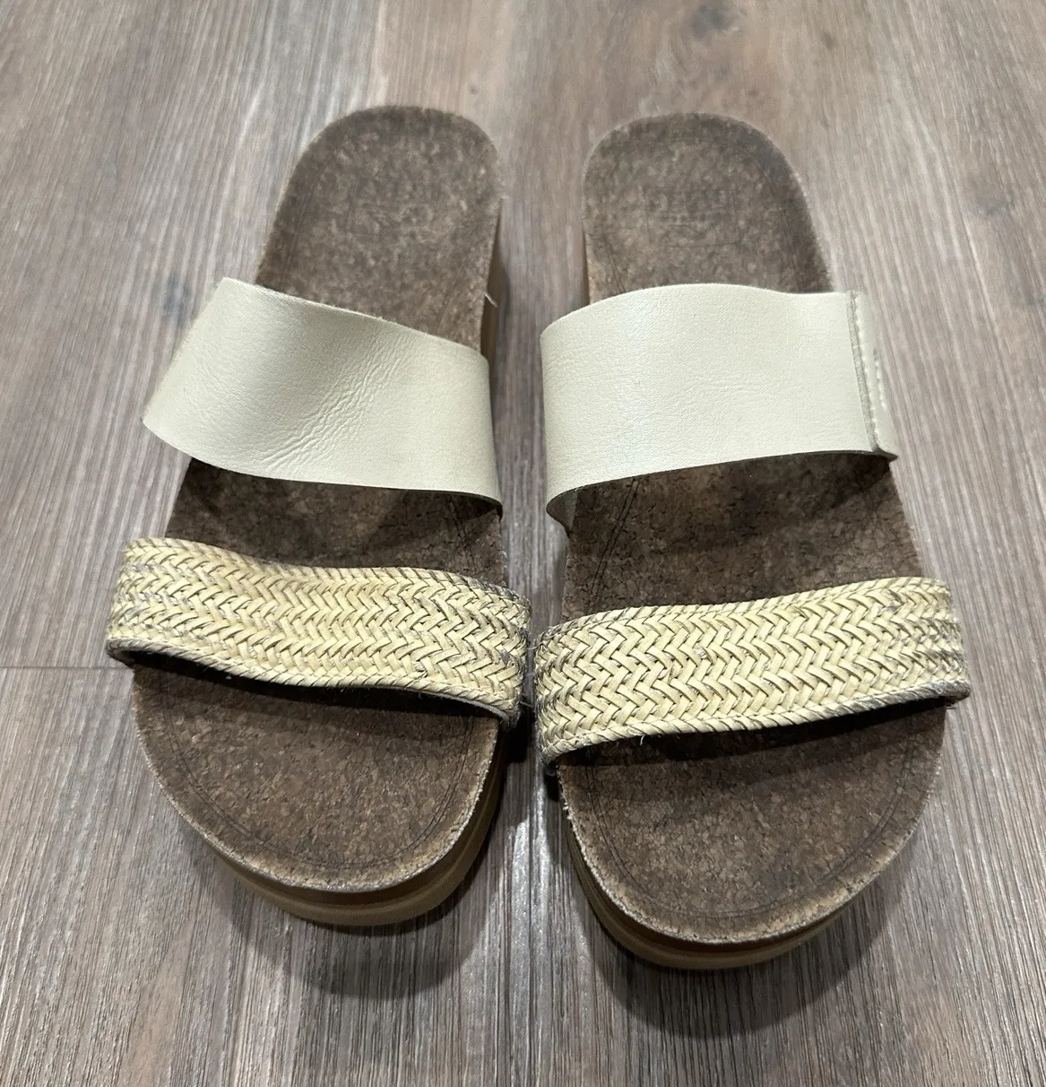 REEF Women's Cushion Vista Hi Slide Sandals Sz 9 Cream Cork Base Slip‎ On Summer - $26 - From Sheryl