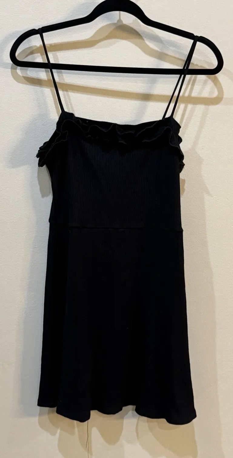 The Reformation Bri Black Knit Ribbed Mini Dress with Ruffle Details in Size Large is a stylish and... Show more