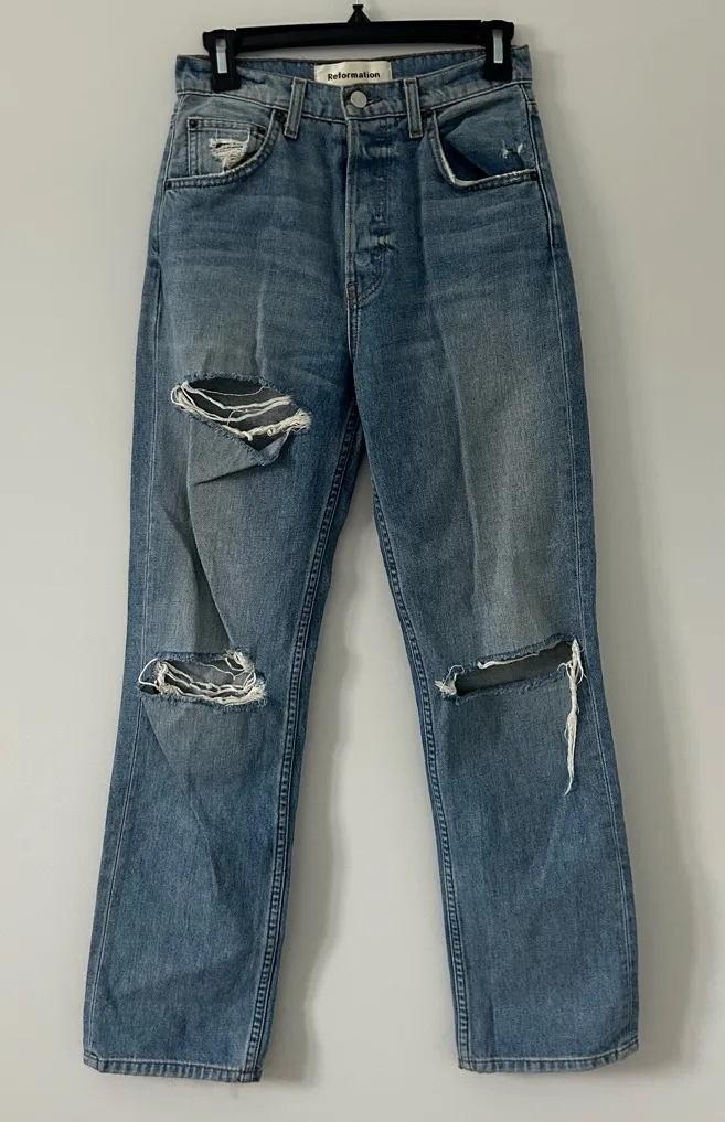 Reformation High Rise Cynthia Button Fly Relaxed Straight Leg Jeans Size 25 Inseam 28in Wash Oahu... Show more