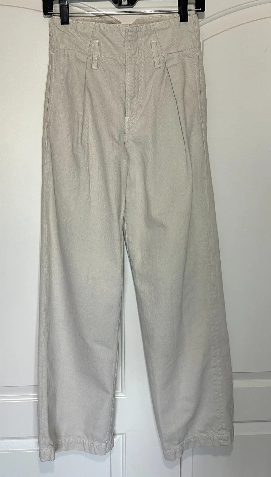 Reformation Jeans 24 Cream Lang Belted Ultra High Rise Pleated Pockets Wide Leg Review photos for c... Show more