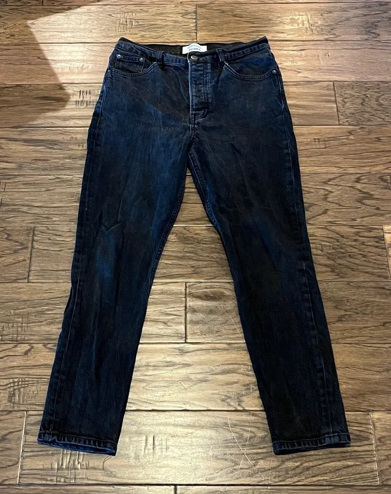 Front button fly Waist 14” Inseam 26” Rise 11” Hip 17 1/2” Black wash Organic cotton blend Crop Sk... Show more