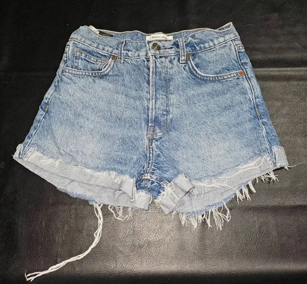 Reformation Jeans Womens Charlie Cuffed High Rise Jean Shorts 26 Waist: 25" Inseam: 3" Rise: 11" Gen... Show more