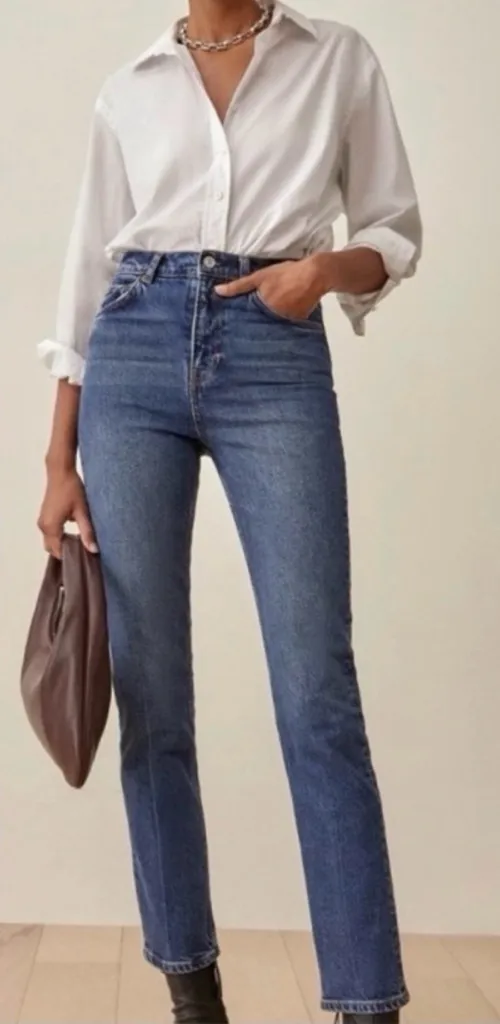 Reformation Liza Straight Jean in Jamaica Blue Size 27 Excellent Used Condition hese timeless hi... Show more