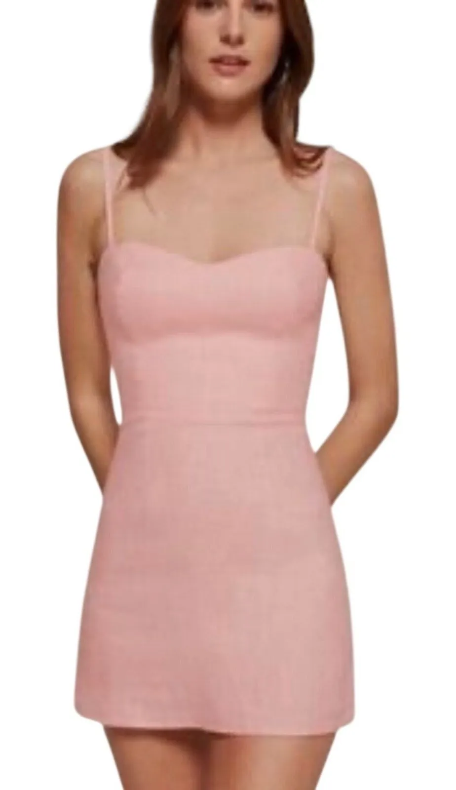 REFORMATION Made in the USA Women’s Auden Pale Pink Linen-feel Mini Dress Adjustable spaghetti str... Show more