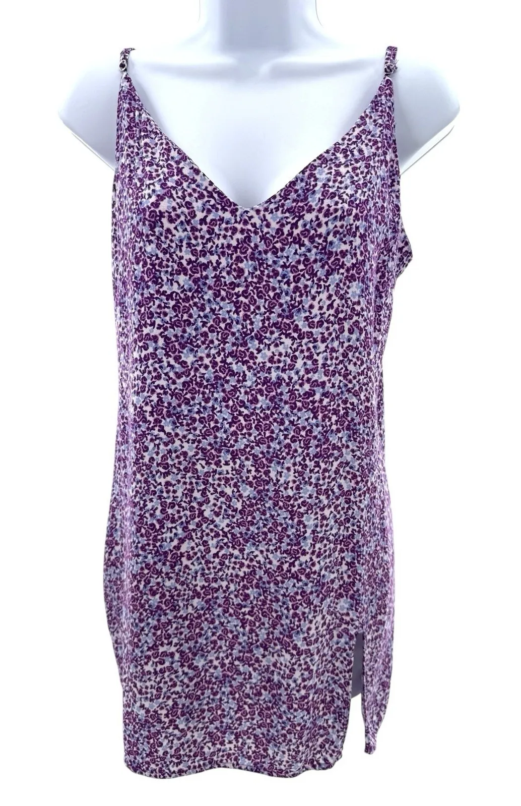 Sweet and flirty, this Reformation slip dress features a dainty purple and lavender micro-floral pri... Show more