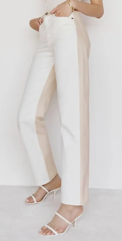 Super cute Reformation Sandy Tonal Reworked High Rise Relaxed Straight Jeans! two toned straight le... Show more