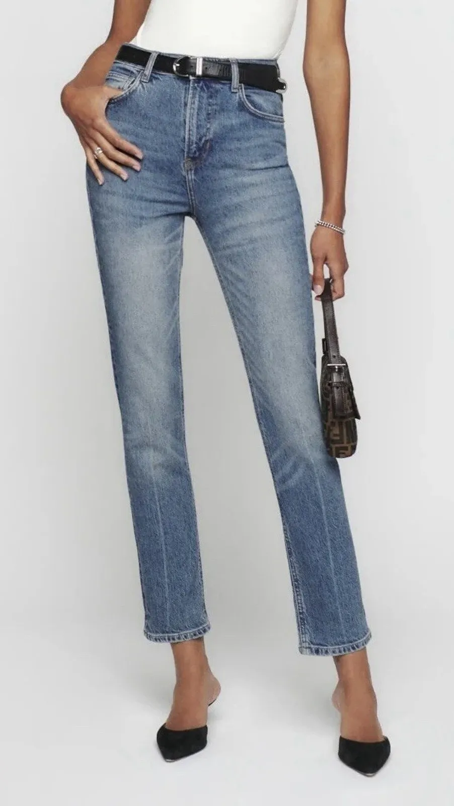 The Reformation Size 28 Liza Blue Organic Denim Ultra High Rise Straight Jeans are a stylish and sus... Show more