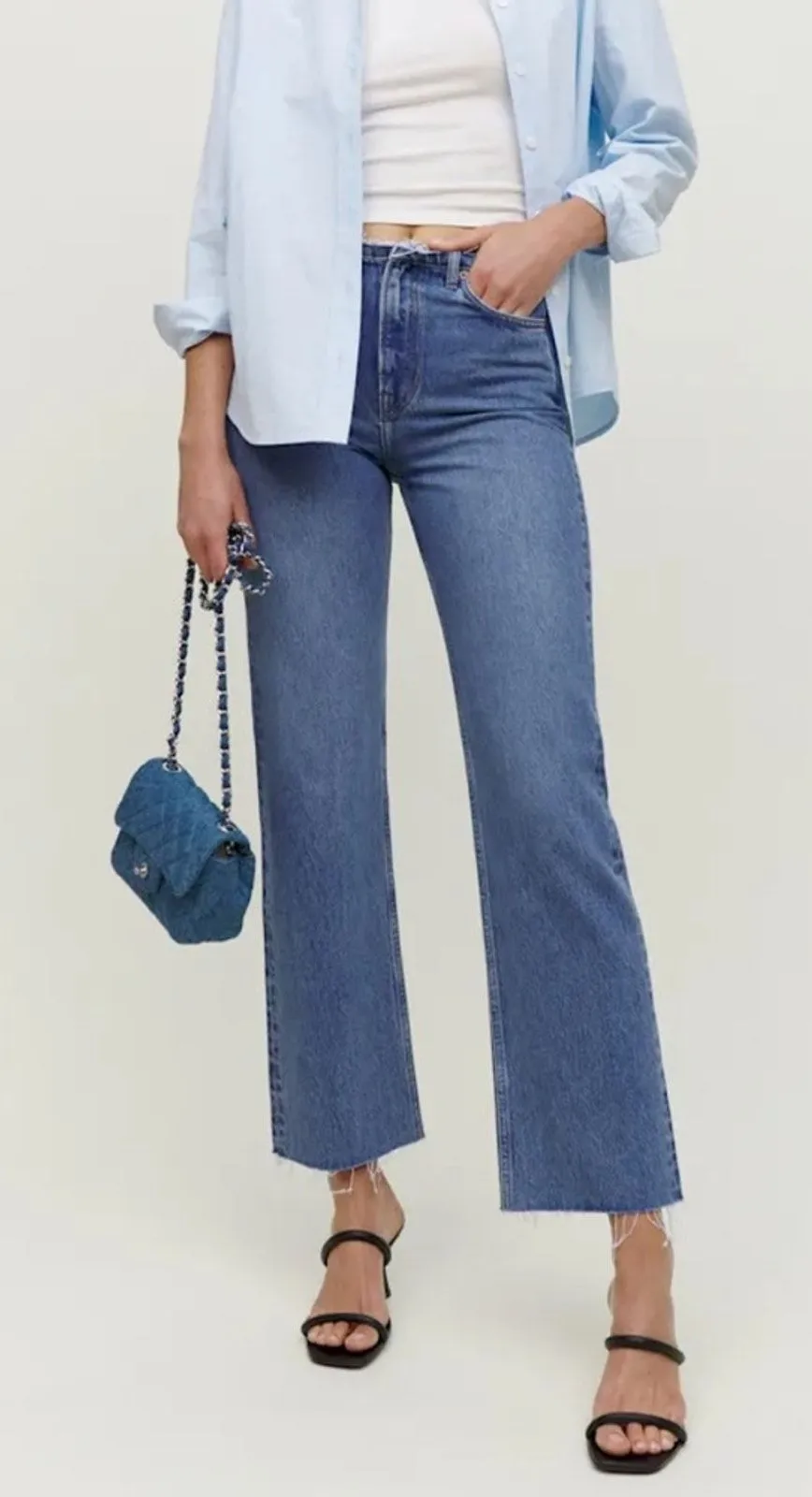 Reformation Women's 28 Mariah Cut Off Waistband Straight Jean New with tags. Size 28. Medium-Dark... Show more