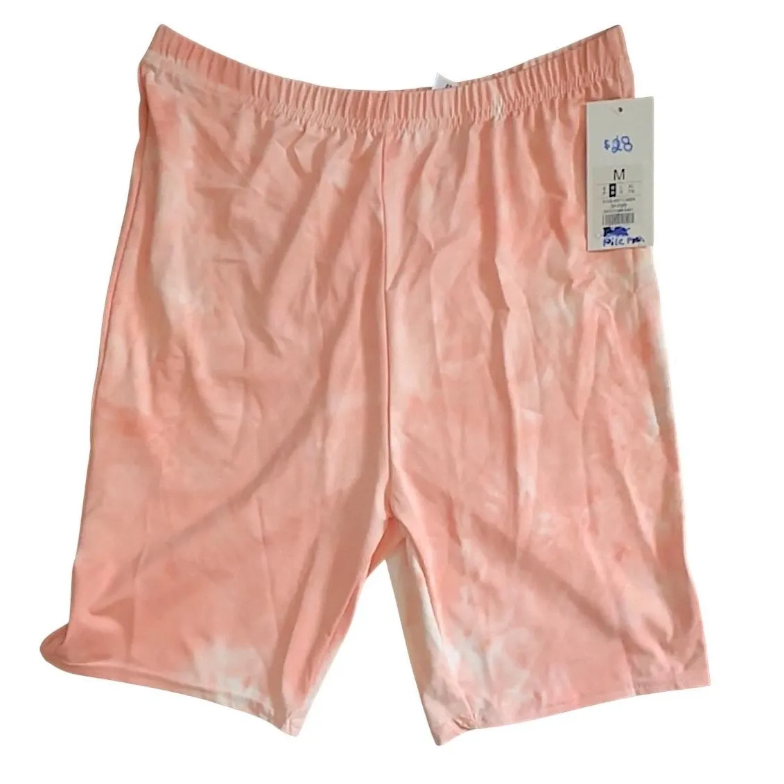 Elevate your activewear game with these eye-catching Refuge Your Fashion Escape Biker Shorts. Featuring a stylish peach and white tie-dye pattern, they boast a high-rise fit and a cinched bum design for a flattering look. Crafted from a comfortable polyester-spandex blend, these squat-proof shorts are perfect for workouts or casual outings.