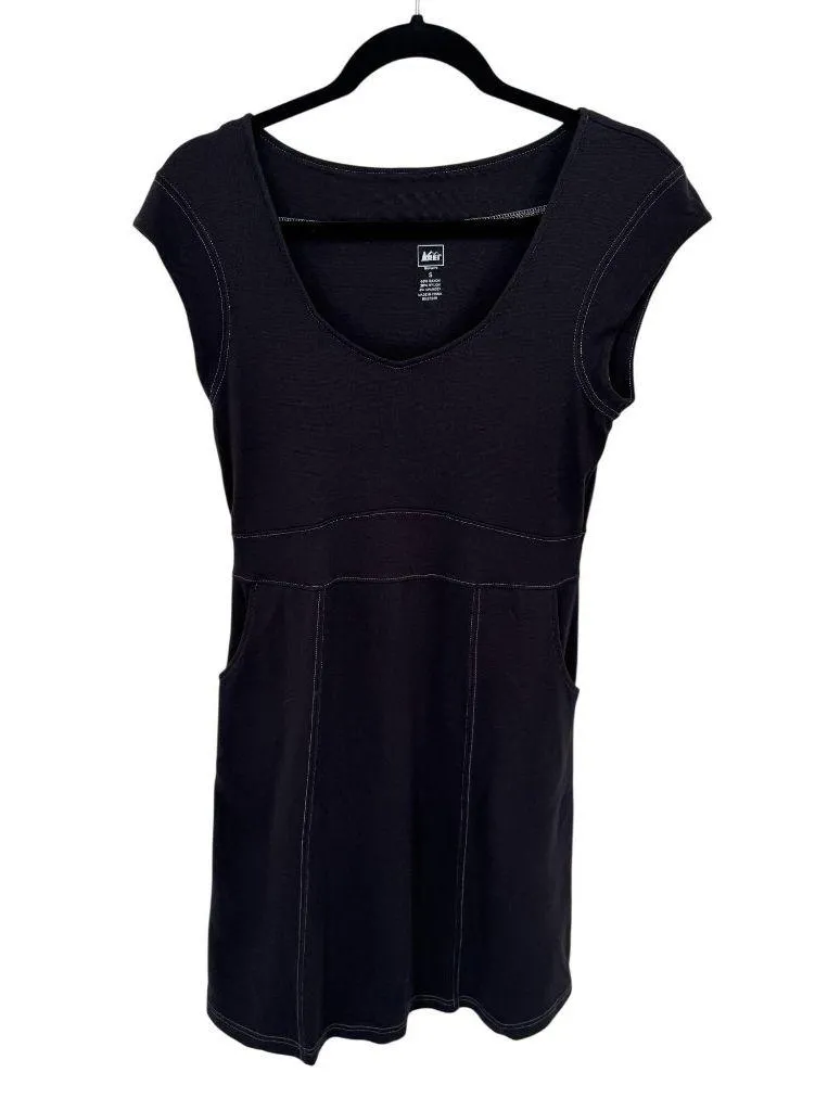 REI Athletic Dress Womens Small Black Raylon Nylon Blend Pockets Cap Sleeves Contrast stiching Approximate Measurements Laying Flat Across: Chest: 16 inches Waist: 15 inches Length: 35 inches Good preowned condition - no rips, stains, or tears. Seller Notes: -Same/Next Business Day Shipping -Smoke Free & Pet Friendly Home