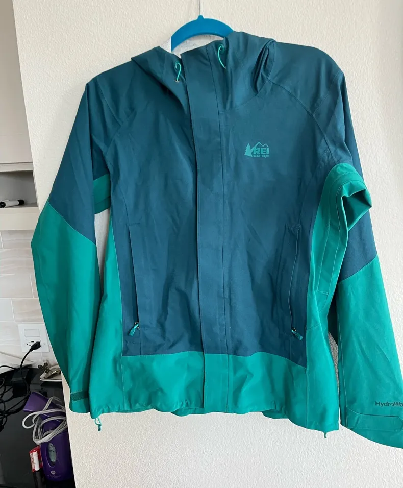 Questions? Leave a comment below! NWOT no flaws <3 I want you to picture yourself in Iceland. You’re on a hike on the side of a dormant volcano. It’s beautiful, but it’s getting cloudy. Heidi, your guide, decides it’s time to turn around. It starts to rain. Not just a little pitter patter drizzle- we’re talking torrential, sideways rain. You put on this rain coat. By the time you get back to where you started, every other part of you is soaked (looking at you, “waterproof” pants), but the bits covered by this slicker are pretty damn dry. This is a fitted sage green rain jacket by REI Co-op. Worn only a few times… while hiking in Iceland. women’s medium. Smoke-free home.