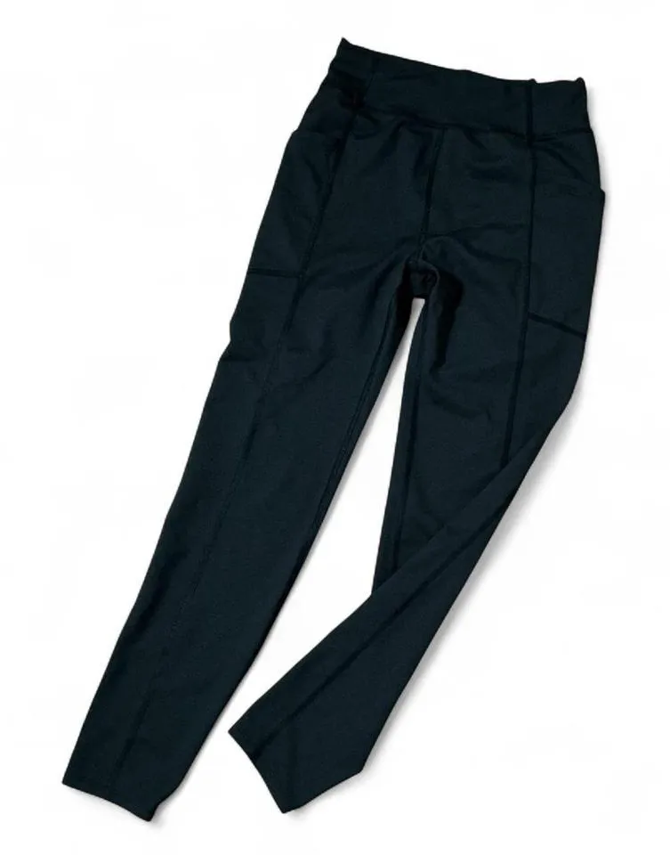 REI Co Op active leggings in black. These comfortable and functional leggings feature convenient side pockets and a drawstring waist for a secure fit. Perfect for workouts, hiking adventures, or casual everyday wear. Keywords: REI, leggings, activewear, workout, athleisure, pockets, stretch, performance, hiking, outdoor, casual, comfortable, sporty #Activewear