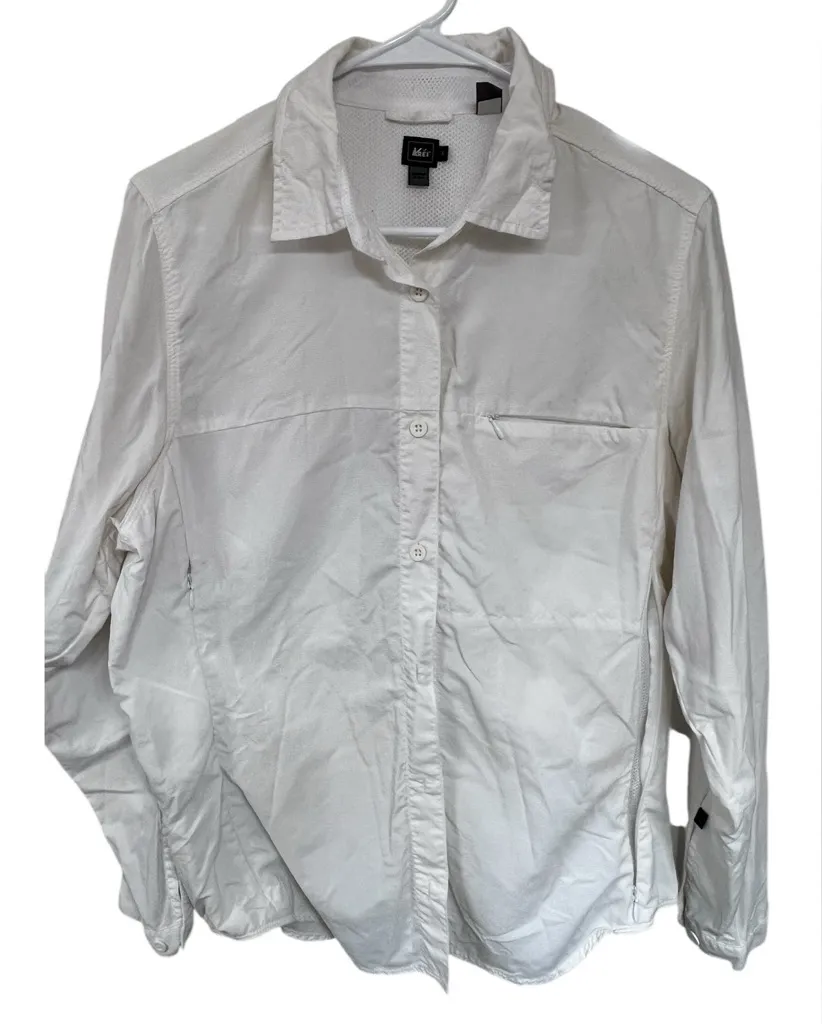 Beloved by thru-hikers and day hikers alike for its cool comfort and adjustable coverage, the women's solid REI Co-op Sahara shirt travels well, too— it packs small and dries fast. BEST USE Travel Hiking SHIRT TYPE Button-up FABRIC 94% nylon/6% spandex SLEEVE LENGTH Long Sleeve Made of cool, moisture-wicking stretch nylon—now bluesign®-approved UPF 30 sun protection Convertible sleeves roll up and secure with button tabs Back vent has a mesh yoke underlay to help keep you cool Side and underarm inset panels provide more comfort and ease of movement Chest pockets have hidden hook-and-loop closure Secure zip pocket at left side seam so stash cash or other