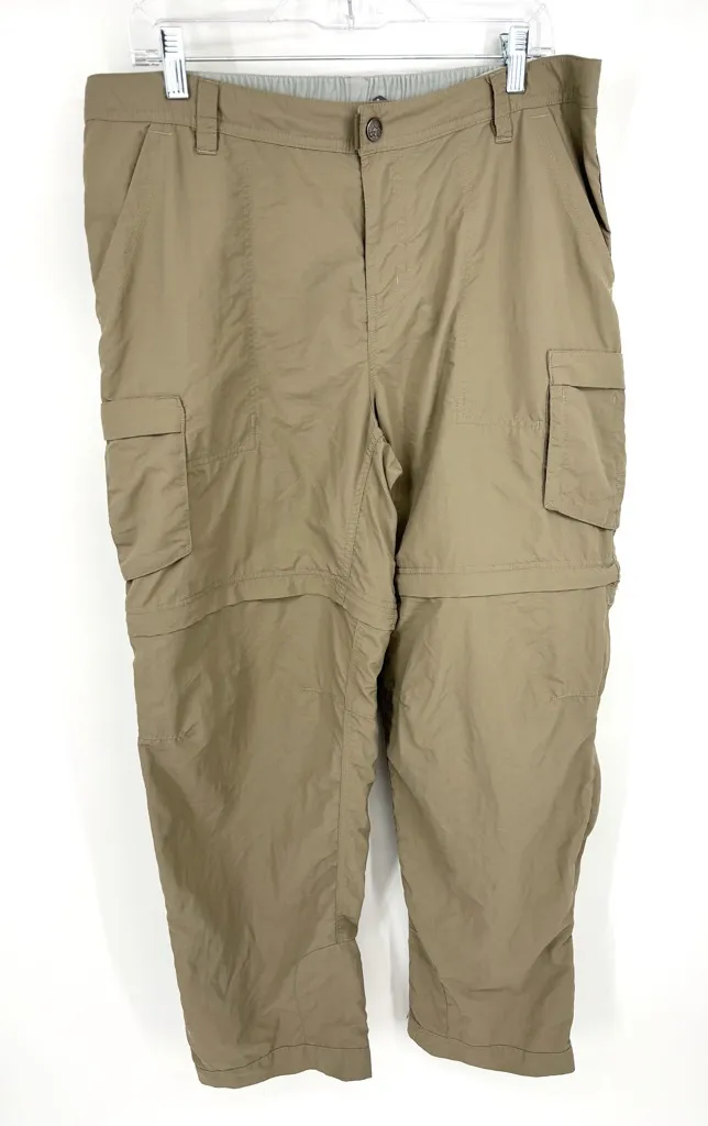 REI Women's Convertible Hiking Pants Zip Off Size 14 Petite Color - Khaki Lightweight, durable, and made for adventure! These REI hiking pants feature zip-off legs that quickly convert into shorts — perfect for hiking, camping, or travel. Breathable mesh lining keeps you cool and dry, while multiple pockets and adjustable cuffs add function and comfort. Details: Women's Size 14 Color: Khaki Shell: 100% Nylon | Mesh: 100% Polyester Zip-off convertible legs Two front pockets, two cargo, two back pockets Adjustable cuffs and belt loops Button and zip fly Style 17-W-16131 Condition Very good, minimal wear, see all photos Measurements are approximate Waist 17" Rise 11" Inseam 28" Leg Opening 7.5" All items ship from a pet and smoke free environment Fast shipping Explore , hiking , adventure , outdoor Bin - 132