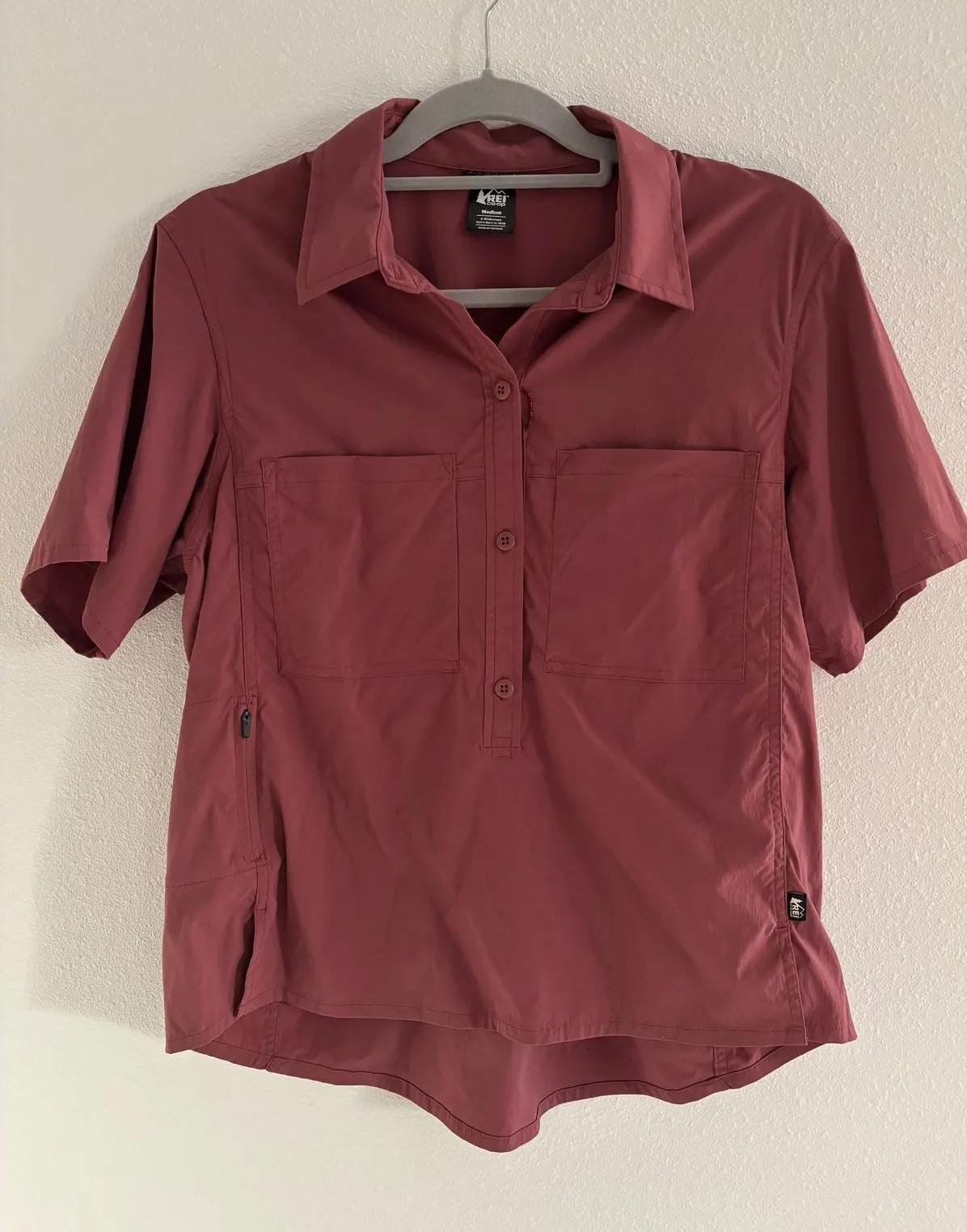 REI Shirt Women Medium Burgundy Short Sleeve Outdoor UPF 30 Sporty Active Hiking Red - $28 - From Nothing New