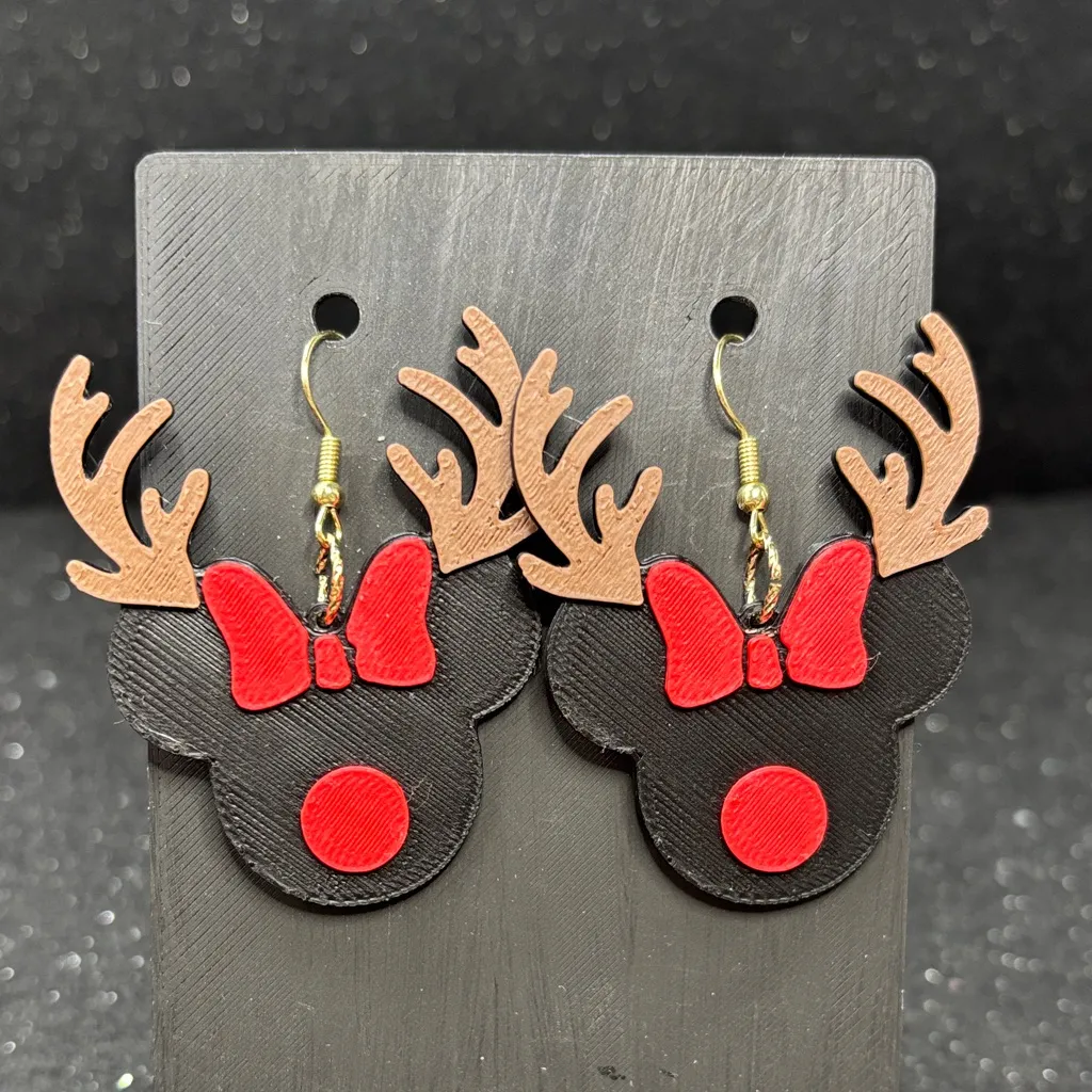 Add a dash of Christmas cheer to your look with these adorable reindeer earrings! Featuring a cute reindeer silhouette with antlers, a bold red bow, and matching red nose, these 3D-printed earrings bring playful holiday magic to any outfit. Finished with elegant gold-tone hooks for a touch of sparkle. ✨ Details: • 3D-printed reindeer design with red bow and nose • Gold-tone hooks and accents • Lightweight & comfortable for all-day wear • Approx. length: 2.25” | Width: 1.5” • Comes with a holiday display card for the perfect gift presentation 🎁 🎄 Perfect for holiday parties, festive photos, or spreading reindeer joy all season long!