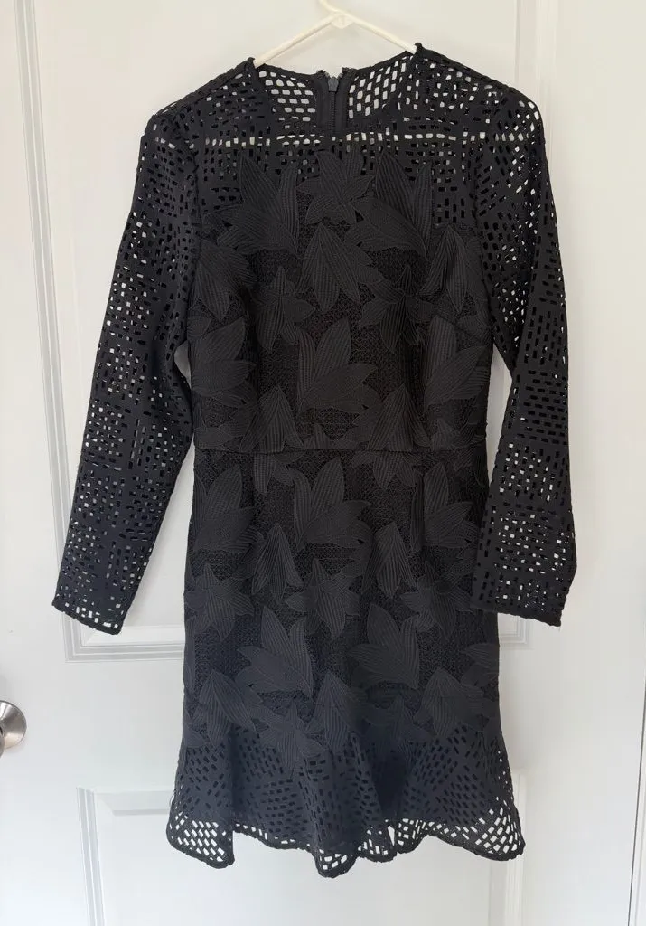 FEATURES Round neckline Zipper closure at back Long sleeves Semi-sheer illusion-lace detailing at yo... Show more