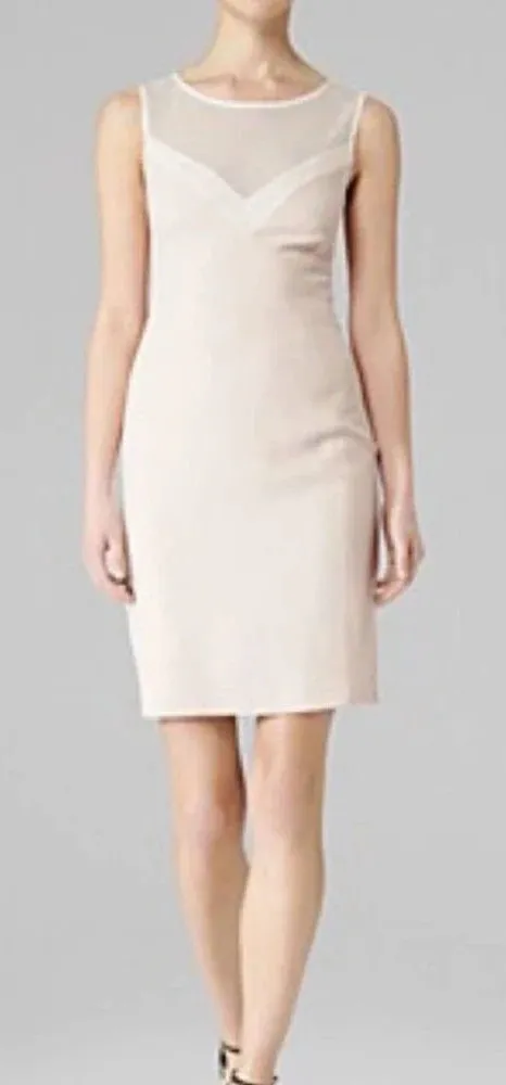 Reiss Lansky Pencil Dress in Pink / White. Crochet white upper Illusion v neckline, upper round neck... Show more
