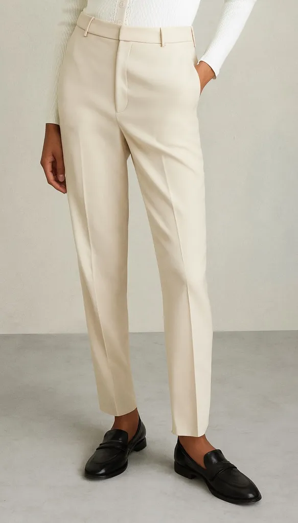 These Reiss Lyonaise Eve white trousers offer a polished slim fit in a structured fabric blend, ideal for office or dressy casual looks. Brand: Reiss Style: Lyonaise Eve Size: Women’s 6 (US) Color: White Material: 77% Acetate, 20% Viscose, 3% Elastane (Lining: 100% Polyester) Features: Straight leg, front zip and button closure, belt loops, tailored fit Condition: New without tags. Spare button attached. Small dirt spot near back pocket Approximate Measurements taken flat:waist 15,rise 10, inseam 32 Style Tags: #WorkwearStyle #TailoredFit #MinimalistLook #CleanLines #ModernClassic