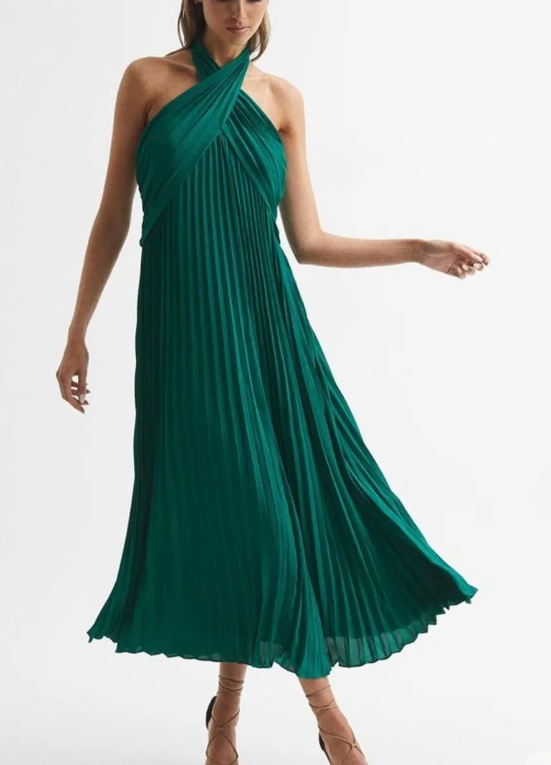 Reiss Roya Halter Neck Pleated Midi Dress - New w/ Tags Size - 6 Color - Green -Halter neck -Sleevel... Show more