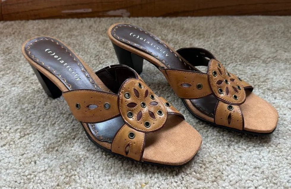 Relativity Brown Leather Metal Grommet Boho Western Grunge Indie Trendy Heels Women’s: 6.5 Excellent Used Condition Leather upper Practically Brand New! **please reference photos for current condition**